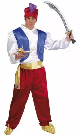 El Disfraz de Árabe Genio para hombre puede ser el traje de Alí Babá que necesita ladrones para ir a desfiles de Carnaval. Y también tienes la opción, de ser el paje de los reyes magos en Navidad. Elige el look que necesites en cada ocasión, y no defraudarás con este color y tejido brillante.