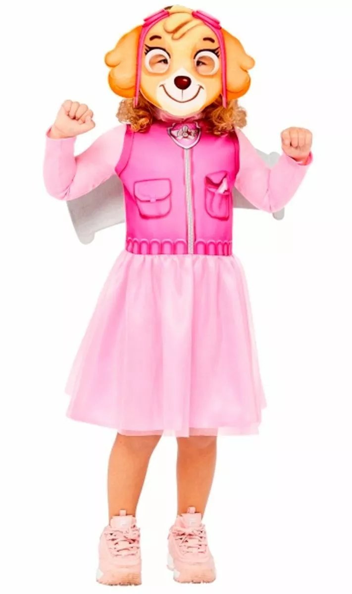 Entre los Disfraces de la patrulla canina triunfa la cachorrita piloto que va vestida de rosa. Lleva a las niñas con este precioso vestido a las fiestas de los Carnavales infantiles del cole y quedará encantada.